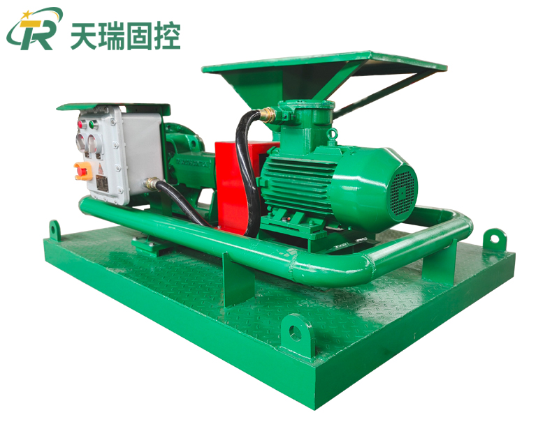 射流混漿裝置是用來配制或增加鉆井液總量,改變鉆井液密度、粘度、失水等,都需要將鉆井液材料(膨潤土,重晶石粉等)和相應(yīng)的化學(xué)添加劑(聚合物等)投入循環(huán)罐中,如果直接投入會造成鉆井液材料和化學(xué)添加劑大量沉淀或成團聚狀,不能獲得分散、均勻的鉆井液。射流混漿裝置是與石油鉆井固控系統(tǒng)配套使用的一種設(shè)備,它可以滿足1500米到6000米鉆井固控系統(tǒng)鉆井液的加重和配制。射流混漿裝置由一臺砂泵和一臺射流式混合漏斗用管匯閥門聯(lián)接安裝在一個底座上組成的。射流混漿裝置經(jīng)過優(yōu)化設(shè)計,性能可靠,移運方便。